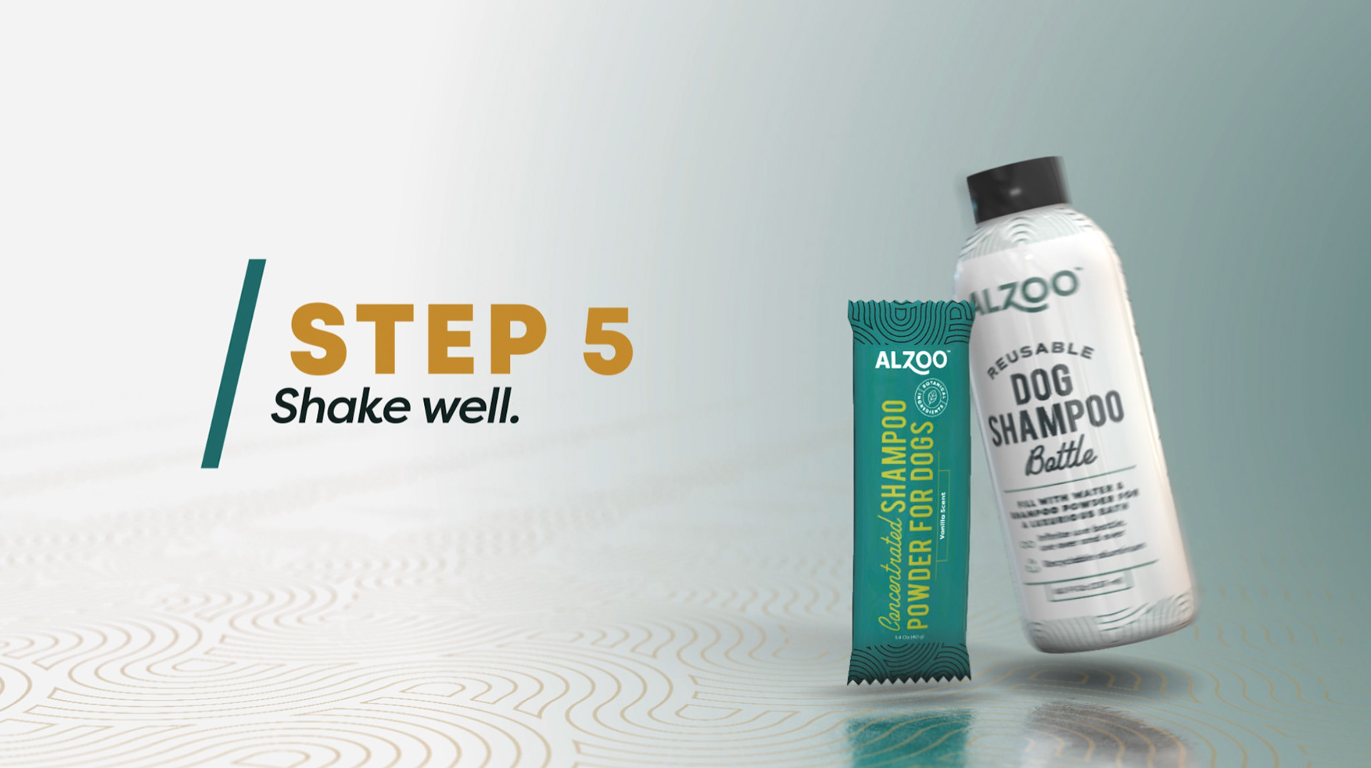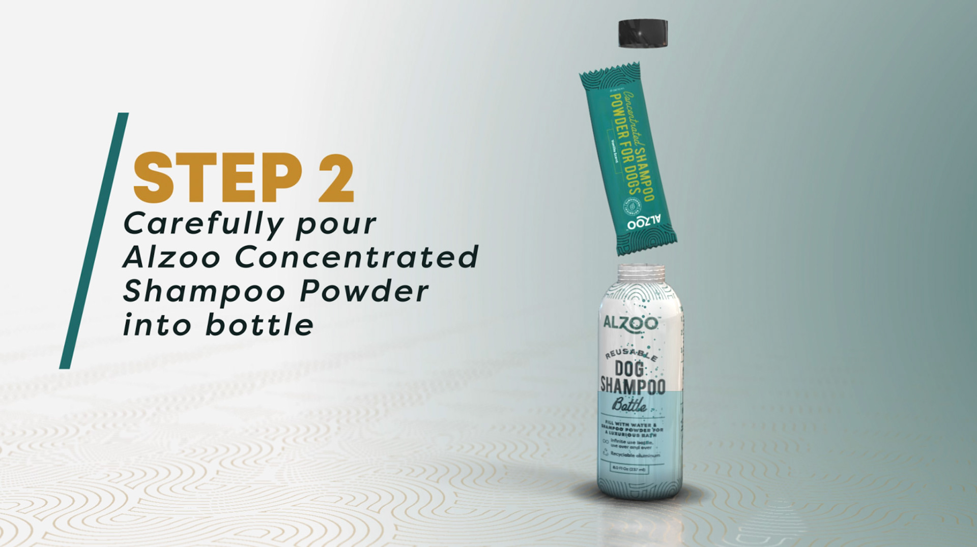 Animation 3d et 2d pour expliquer l'utilisation d'un shampoing pour chien.